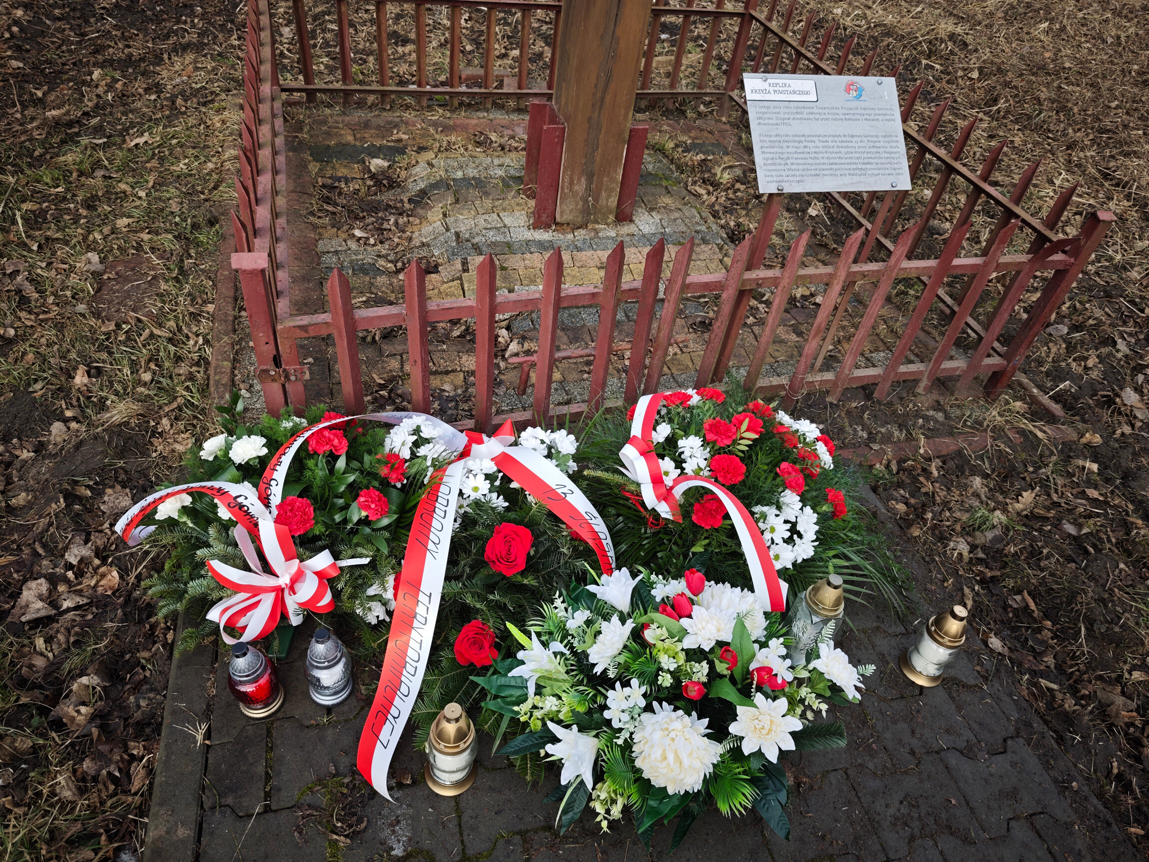 Upamiętnienie wydarzeń powstania Styczniowego odbyło się w dniu 6 lutego 2026 roku pod krzyżem powstańców roku 1863. W uroczystości uczestniczyli v-ce prezydent Dąbrowy Górniczej Ewa Fudali-Bondel, Arkadiusz Rybak dyrektor Muzeum Sztygarka, zarząd, członkowie Towarzystwa Przyjaciół Dąbrowy Górniczej, przedstawiciel Wojska Polskiego major Wach. Przedstawiono wydarzenia tamtych lat kiedy to 7 lutego 1863 roku w związku z bezczynnością sił rosyjskich, powstańcy podjęli decyzję o przeprowadzeniu poważniejszej akcji ofensywnej. W Ojcowie zebrały się siły które wkrótce urosły do ok. 2500, nad którymi komendę objął pułkownik Apolinary Kurowski, wkrótce żołnierze Kurowskiego wyzwolili z rąk rosyjskich kolejno Olkusz, Sławków oraz Maczki. Celem było przejęcie zakładów przemysłowych, zdobycie pieniędzy z komór celnych w Modrzejowie i Czeladzi. W Sosnowcu nocy z 6 na 7 lutego stoczono z liczącym ok. 150 ludzi oddziałem rosyjskiej straży granicznej regularną bitwę w wyniku której opanowano stację. Po raz pierwszy na ziemiach polskich przygotowano do walki pociąg, który został przystosowany przez kolejarzy na stacji w Maczkach do walki. Wagony towarowe zostały obudowane podkładami kolejowymi, w których wycięto otwory umożliwiające prowadzenie ognia z wnętrza wagonów. Po zdobyciu Sosnowca, powstańcy przybyli do Dąbrowy, którą zajęli bez walki. Tu oddział odpoczywał po walce, a ranni znaleźli się pod opieką lokalnego szpitala. Wkrótce, również bez walki zajęte zostały kolejne miasta – Będzin, Czeladź i Siewierz, a w całym Zagłębiu Dąbrowskim ustanowiona została władza Tymczasowego Rządu Narodowego. W ten sposób Zagłębie stało się jedynym obszarem całkowicie wyzwolonym z rąk rosyjskich. Delegacje złożyły pod krzyżem powstańczym kwiaty i znicze.
